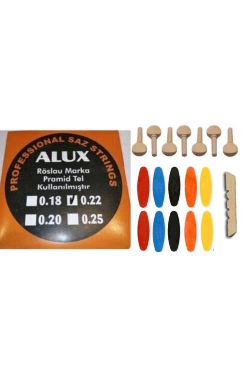 Bir Takım Şenses Müzik Alux Marka Divan Bağlamalar (52 Tekneye Kadar) İçin Piramit Profesyonel Bağlama Teli 0 22 + 7 Adet Ağaç Burgu + 10 Adet Çift Taraflı Numaralı Tezene + Bir Adet Alt Eşik.