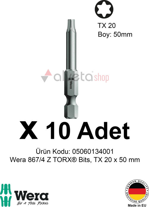 Wera bits, torx uç, TX20 bits, yıldız tornavida ucu, vidalama ucu, 50mm bits, Alveta Wera, Wera 867/4 Z, torx tornavida, vidalama seti, profesyonel bits, manyetik uç, matkap ucu, yıldız uç seti, endüstriyel bits, TX20 tornavida, dayanıklı bits uç, Wera torx uç, profesyonel vidalama, torx seti