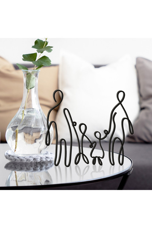 Alvina Atölye Aile Figürlü Anne - Baba - Büyük Erkek Küçük Kız Çocuk Line Art Dekor Biblo - Bioplastik