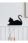 - Kedi figürleriyle süslenmiş siyah duvar dekoru, evinizin veya ofisinizin atmosferine şirin bir dokunuş katıyor.