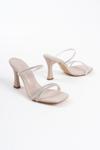Alvina Bej Taşlı İnce Bantlı Kadın Topuklu Terlik