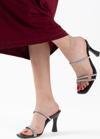 Alvina Siyah Taşlı İnce Bantlı Kadın Topuklu Terlik