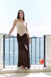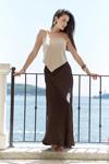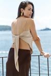 Ayarlanabilir askılı, sırt bağlamalı, üçgen keten crop.