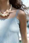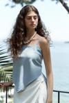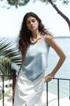 Sateen Degaje Yaka İncili Salaş Bluz - Bej