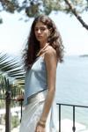 Ayarlanabilir askılı, sırt bağlamalı, üçgen keten crop.