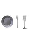 - Zarif pembe mika malzemesiyle üretilen bu şık tabak, kadeh ve çatal seti, sofranıza modern bir dokunuş katıyor.