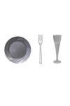 - Zarif pembe mika malzemesiyle üretilen bu şık tabak, kadeh ve çatal seti, sofranıza modern bir dokunuş katıyor.