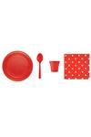 Ambalaj Evi Kırmızı Plastik Tabak Plastik Bardak Plastik Kaşık Puantiyeli Peçete Seti 95 Parça Sofra Seti