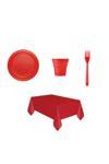 Ambalaj Evi Plastik Tabak Bardak Çatal Masa Örtüsü Seti Kırmızı 76 Parça Sofra Seti Plastik Parti Seti