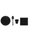 Ambalaj Evi Siyah Plastik Tabak Plastik Bardak Plastik Kaşık Peçete Seti 95 Parça Sofra Seti Parti Seti