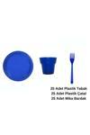 Doğum günü partilerinizde şıklığı ve konforu bir arada sunan lacivert plastik tabak seti, 75 parçadan oluşur
