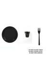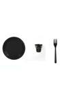 tabaklar, bardaklar ve peçeteler dahil olmak üzere eksiksiz bir set sunar