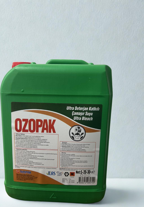 OZOPAK deterjan katkılı çamaşır suyu, çamaşır ve silinebilir yüzeylerin temizliğinde kullanılmak üzere geliştirilmiştir.