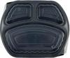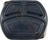 Siyah Plastik Kapaklı Yemek Kabı Mikrodalga Kabı 3 Bölmeli