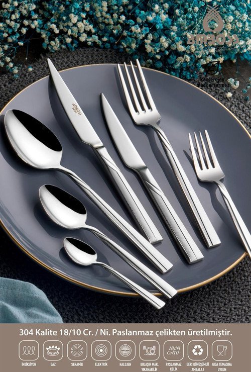 - Dayanıklı çelik malzeme kullanılarak üretilmiş, uzun ömürlü ve sağlam bir kullanım sunar - 12 kişilik geniş set içeriği ile aile yemeklerinden özel davetlere kadar her türlü sofranız için idealdir - Çatal, bıçak ve kaşık olmak üzere üç parçadan oluşan set, mutfakta ihtiyacınız olan her şeyi tek pakette toplar - Şık ve modern tasarımı ile sofra düzeninize estetik bir dokunuş katar