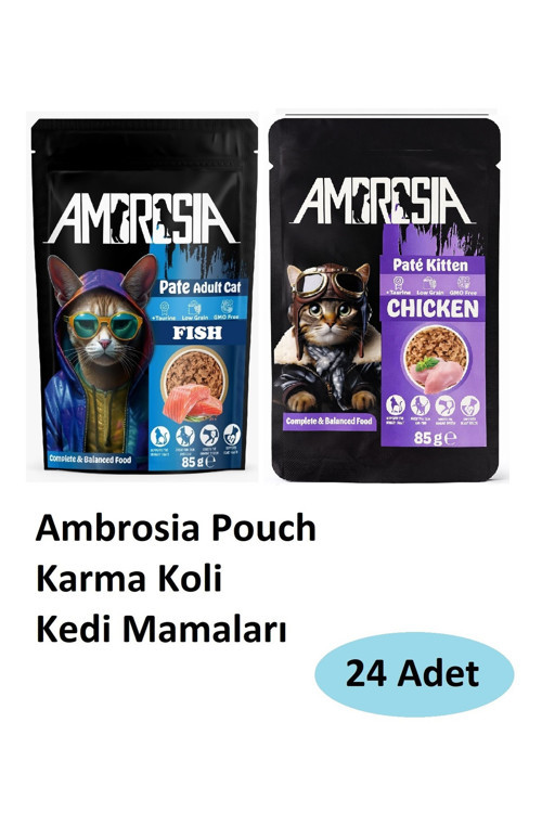 24'lü Ambrosia Poch Karma Koli Kedi Maması 07 Ambrosia Poch Balıklı Yetişkin Kedi Maması Ambrosia Poch Tavuklu Yavru Kedi Maması