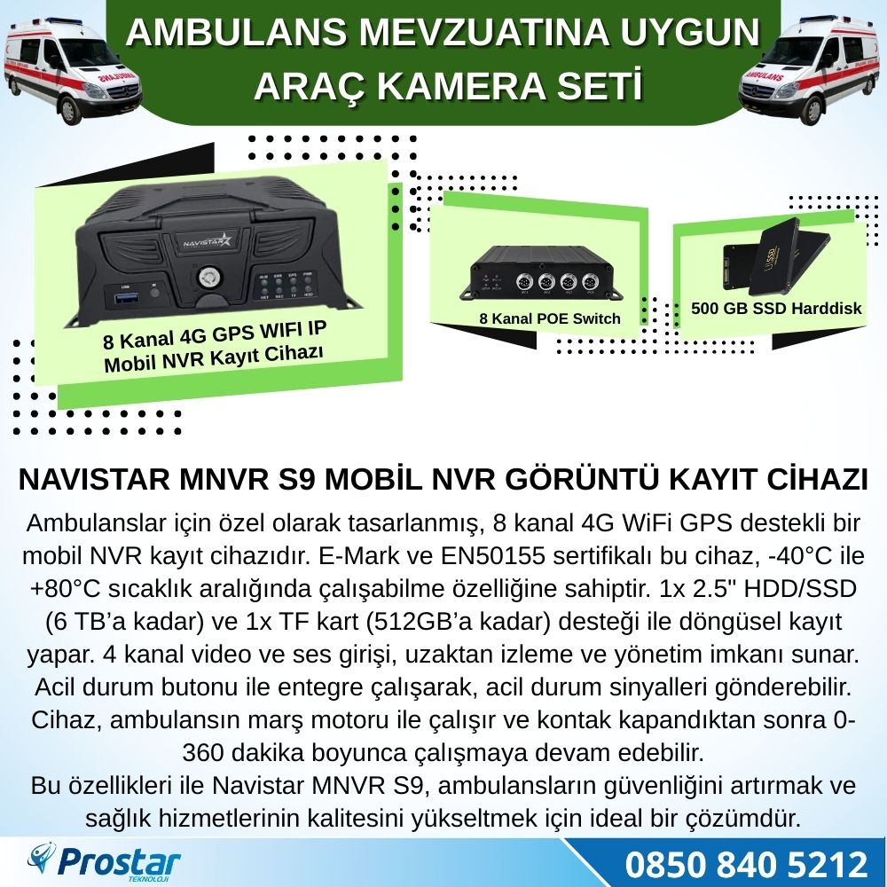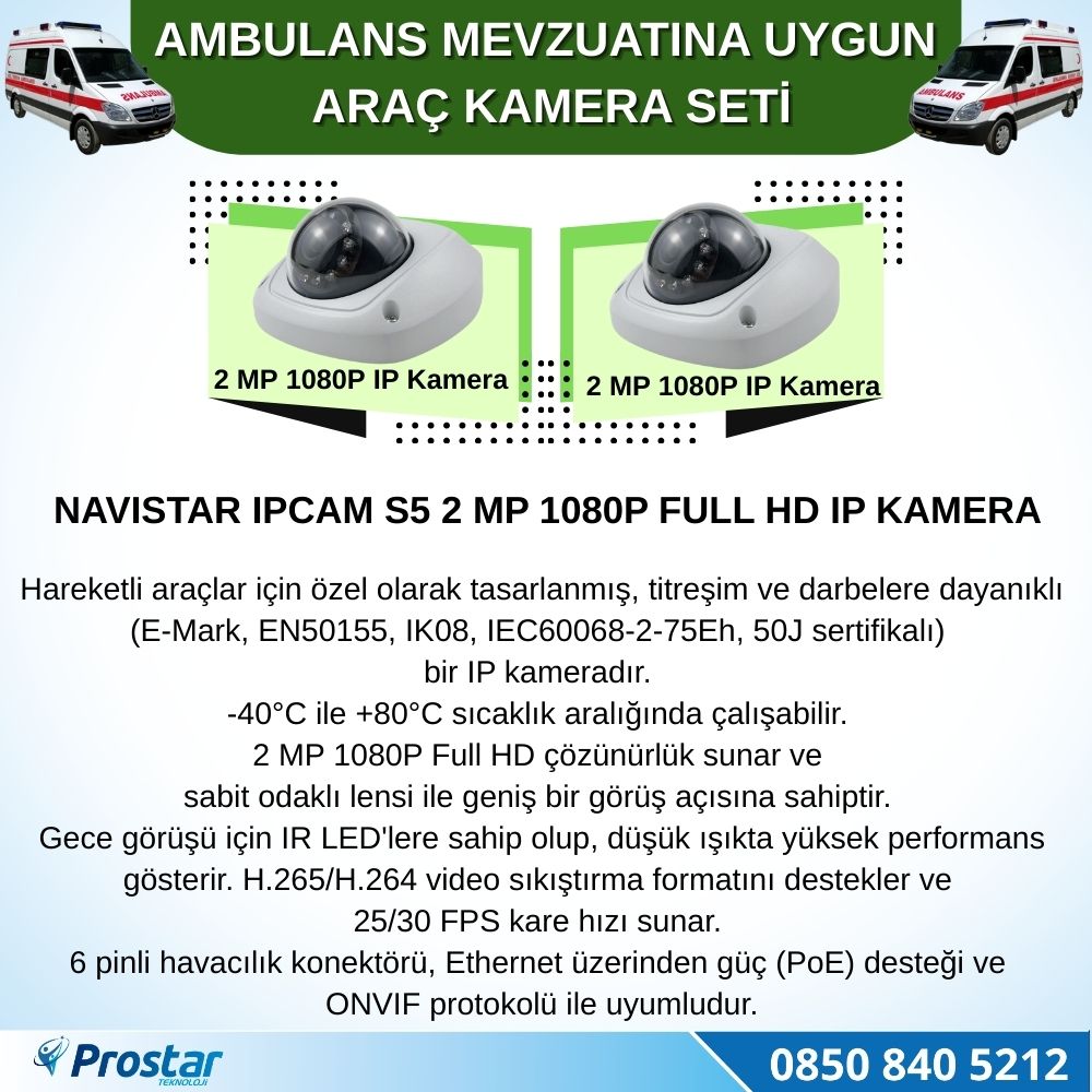 Her bir ambulans için iki adet kamera (bir ön kabin ve bir ön seyir kamerası) sağlanması gerekmektedir. Navistar MNVR S9 ve IPCAM S5, bu gereklilikleri tam anlamıyla karşılamakta ve yüksek çözünürlükte görüntü kaydı yapabilmektedir. NVR cihazı, ambulans çalışır haldeyken anlık görüntülerin izlenmesini ve geçmişe dönük görüntülerin kaydedilmesini sağlamaktadır.