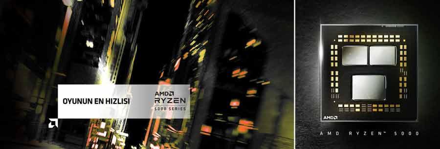 AMD Ryzen™ 5000 Serisi masaüstü işlemciler, en iddialı oyunlarda itici güç olurken, 3D veya video işleme ya da yazılım derleme gibi çok iş parçacıklı görevleri de kolayca halleder. 16'ya varan çekirdek, 32 iş parçacığı, 4,9 GHz'e varan artırılmış saat hızları ve 72 MB'a varan önbellek ile AMD Ryzen™ 5000 Serisi işlemciler oyununun sonucunu değiştirecek performans sunar.1