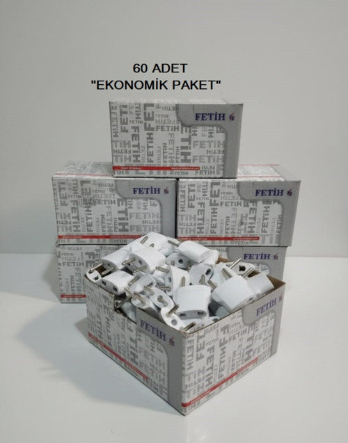 Amerikan Çin Tipinden Türk Tipine Priz Dönüştürücü Adaptör - 60 Adet Ekonomik Paket - Beyaz