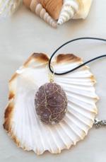 Ametist Doğal Taş Kolye El İşi Tel Sarma Örgü Tasarım Çakra Charm Takı Kadın Kız