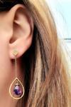 Ametist Taşlı 925 ayar Gümüş Üzerine Altın Kaplama Tasarım Küpe