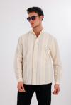 Sıcak havalarda stilinizi konforla buluşturan çizgili uzun kollu pamuklu yazlık erkek gömlek, gardırobunuzun favorisi olmaya aday! pamuklu dokusu sayesinde nefes alabilir yapıya sahip olan bu gömlek, gün boyu serin ve rahat hissetmenizi sağlar.