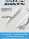Hızla emilen yapısıyla ciltte yağlı bir his bırakmaz ve uzun süreli nemlendirme sağlar. pH dengesi sağlanmış, yüksek saflıktaki laktik asit içeriğiyle formüle edilmiştir. Günlük kullanım için uygundur. Parfüm, boya, paraben ve ftalat içermez. Hayvanlar üzerinde test edilmemiştir.