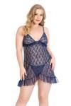Aria's Closet Büyük Beden Lacivert Kısa Tül Gecelik 3025