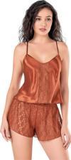 Aria's Closet Tarçın Saten Babydoll Şort Takımı 9110