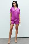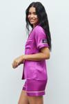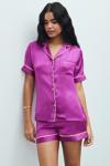 Amoureux Fuşya Kısa Saten Pijama Takımı