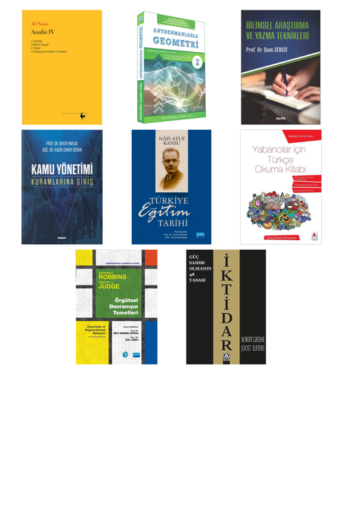 Analiz 4 - Antrenmanlarla Geometri 2 - Bilimsel Araştırma Ve Yazma Teknikleri - Kamu Yönetimi Kuramlarına Giriş - Türkiye Eğitim Tarihi - Yabancılar İçin Türkçe Okuma Kitabı - Örgütsel Davranışın Temelleri - İktidar