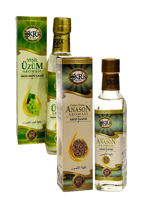 KRK Yeşil Üzüm Aroması + Anason Aroması -ÜRÜN MİKTARI- 250 cc. + 250 cc. Cam Şişelerde Yeni Üretim Tarihli