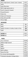 Laube® modelleri: Litening / Cowgirl / Xpress / Clippers, Mini Micro / Thunder / Xpress / Clippers, 503 Lazor, 513, 505 Super Cordless, 521 Mini Lazor, 523 Variable Speed MINI LAZOR, 544 Mini Lazor CORDLESS Clipper, 553, 555, 573, Lightening/Micro, 881 iCLIP, 851 iVAC, etc.