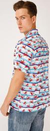 ANEMOSS ERKEK GÖMLEK: Anemoss Yengeç Erkek Gömlek, %70 pamuk, %30 keten karışımı kumaş yapısı ile rahat ve hafif dökümlüdür. Üzerinde dijital baskı tekniğiyle uygulanmış yengeç desenleri vardır. Gömleğin etek ucu hafif yuvarlak kesim olarak tasarlanmıştır ÖZEL TASARIM: Marin esintilere yer verdiği tablolarıyla büyük ilgi gören ünlü tasarımcı Gamze Yalçın’ın Anemoss koleksiyonundan aldığı ilhamı taşıyarak yengeç deseninin uygulandığı bu gömlek, sıcak yaz günlerini rahat ve renkli geçirmek isteyen erkekler için tasarlanmıştır. Klasik gömleklerden daha farklı ve daha tarz tasarlanmış olan yengeç gömlek, denizi yansıtan mavinin en güzel tonlarını bir arada bulundurur KONFORLU VE RAHAT: Pamukla keten karışımı dokusu ile doğallık, yumuşaklık ve serin tutma özelliği sunan bu kısa kollu gömlek yaz aylarında kullanılabilecek en iyi seçenektir. Düzgün kesimi ve özel tasarımı ile ayrıca yazlık yerlerde, gece eğlencelerinde ya da parti gibi organizasyonlarda başka kimsede rastlayamayacağınız ayrıcalıklı bir stil yaratma şansına sahip olursunuz YIKAMA TALİMATI: Hassas ve ters yıkama 86 ° F (30 ° C) yapılmalıdır. Orta sıcaklıkta ütü ile ütülenebilir. Kuru temizleme yapılamaz. Kurutucu ile kurutulmamalıdır ÜRÜN ÖLÇÜLERİ: Kumaş yapısı %70 pamuk, %30 keten, standart fit kalıp, kısa kollu. Modelin ölçüleri boy: 1.86, göğüs: 97, bel: 77, kalça:95, M beden giymektedir
