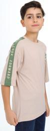 Manken Yaşı 11 / Boy :152 -Numune Bedeni: 11-12 Yaş - Pamuk 97%, Likra 3% - Standart Kalıp -Rahat Kesim-Omuz ve Kolları Şerit Garnili-Kol, Omuz ve Gövde Dikey Yazı Baskılı- Bisiklet Yaka-Kumaş Özelliği :Üst 40/1 Likralı Süprem