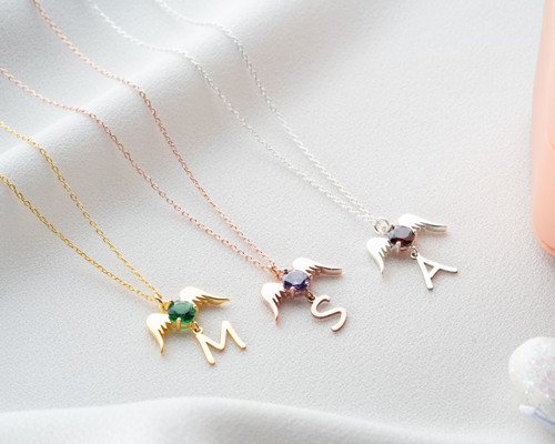 Melek kanatlı doğum taşlı harf kolye, kişisel anlamı, zarif tasarımı ve sembolik gücüyle unutulmaz bir hediye alternatifi sunar.