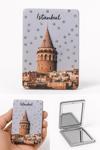 İstanbul Galata Kulesi Temalı Taşlı Büyüteçli Pratik Mini Cep Çanta Makyaj Aynası