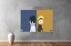 tablolarımızı ek olarak alacağınız çift taraflı bantlar yardımıyla ya da arkasındaki tahta çıkıntı kısmını çivilerin üzerine yerleştirerek duvarlarınıza asabilirsiniz.