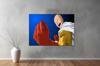 tablolarımızı ek olarak alacağınız çift taraflı bantlar yardımıyla ya da arkasındaki tahta çıkıntı kısmını çivilerin üzerine yerleştirerek duvarlarınıza asabilirsiniz.