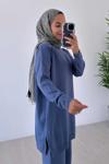 Ka Hijab Kolları Fiyonk Detay Bağlamalı Üçlü Takım - Lacivert