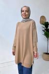Modern tesettür stilini zarafetle buluşturan Anje Triko Tunik – Camel, günlük kombinlerinize konfor ve şıklık katar.