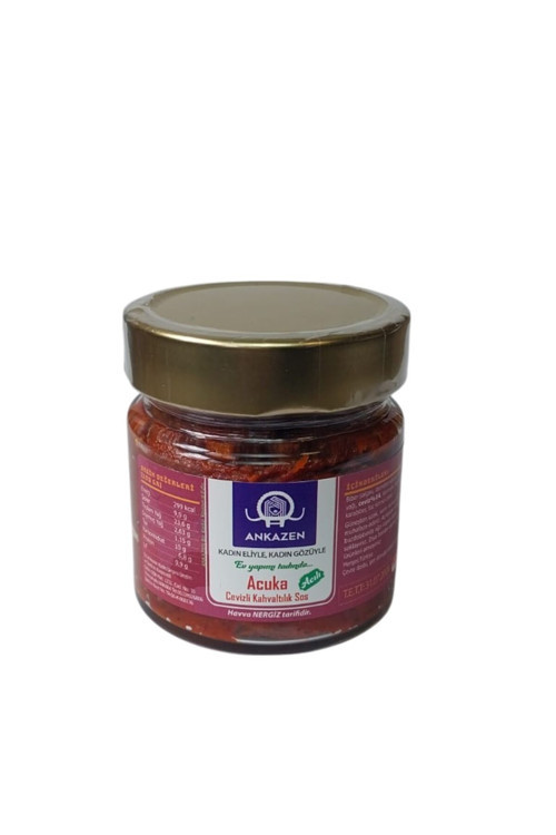 Ankazen Kadın Girişimi Üretim ve İşletme Kooperatifi ACUKA Cevizli Kahvaltılık Sos 200 gr Ürünümüz Kooperatif ortaklarımızdan Havva Nergiz tarifi ile ev yapımı tadında hazırlanmıştır.