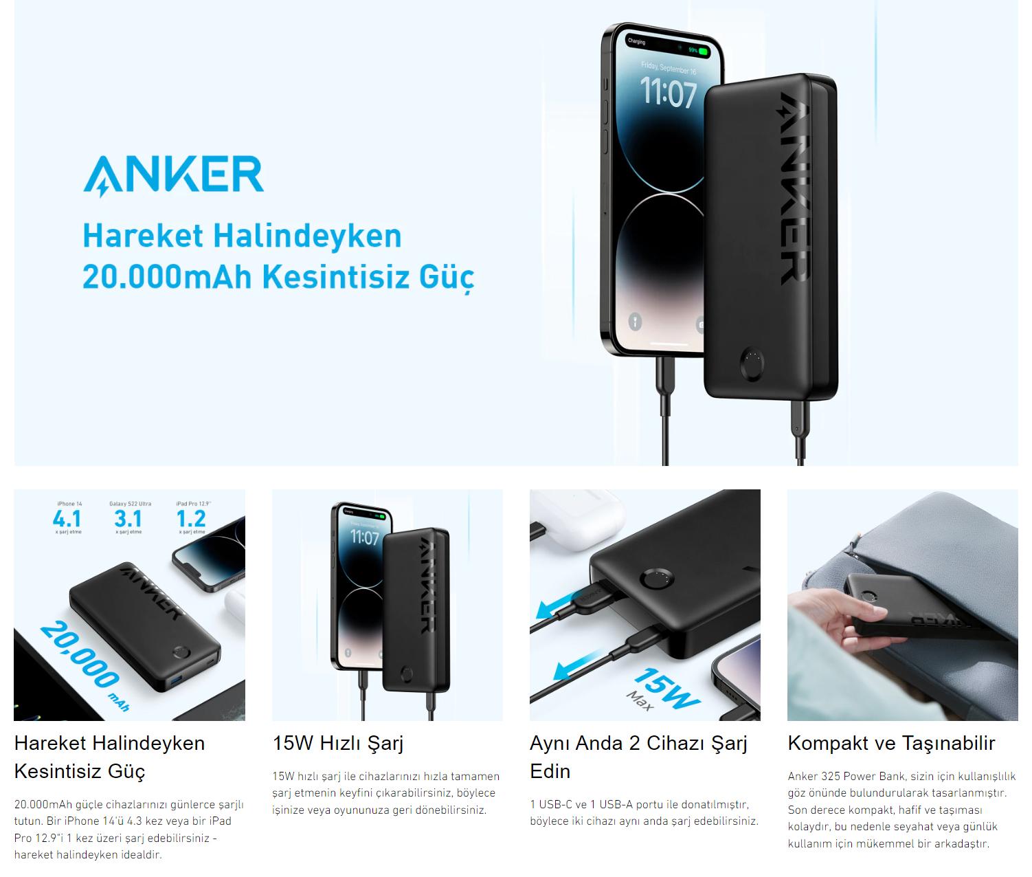 Gelişmiş Teknolojisi ile Anker 325 PowerCore 20K II Powerbank