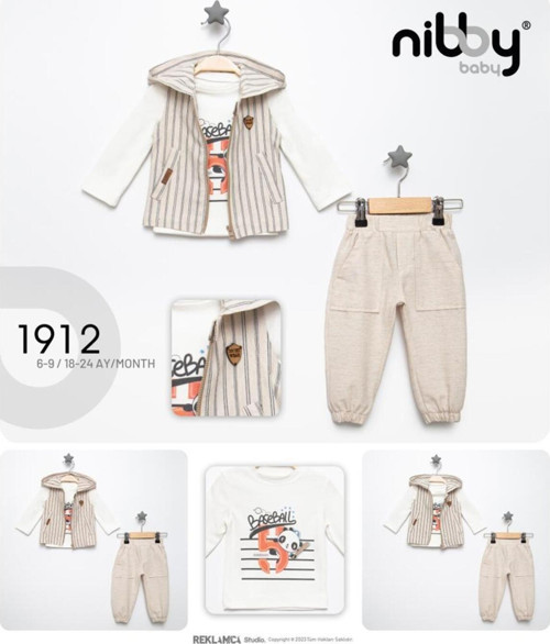 Annebebe markasının şıklığı ve konforu bir araya getiren yelekli takımı, minik beyefendiler için özel olarak tasarlanmıştır.