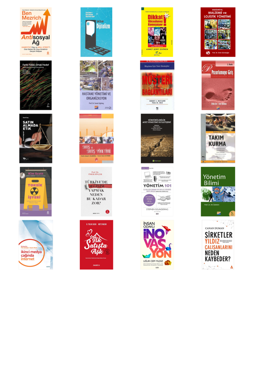 Antisosyal Ağ - Dijitalizm - Dikkat Vücudunuz Konuşuyor - Endüstriyel Malzeme ve Lojistik Yönetimi - Farklı Yollar Ortak Hedef - Hastane Yönetimi ve Organizasyon - Müşteri Bağlantıları (Ciltli) - Pazarlamaya Giriş - Satın Almada Etik - Manevi Değerler - Satış ve Satış Yönetimi - Sürdürülebilir Afet Yönetimi ve İletişimi - Takım Kurma - Toksik İşyeri - Türkiye'de Değişim Yapmak Neden Bu Kadar Zor? - Yönetim 101 - Yönetim Bilimi - İkinci Medya Çağında İnternet - İlk Satışta Aşk - İnsan Odaklı İnovasyon - Şirketler Yıldız Çalışanlarını Neden Kaybeder?