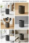 Fevito Antrasit - A+ Silindir Kaşıklık – Tezgah Üstü Servis Standı, Su Gider Delikli, Plastik Düzenleyici