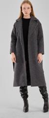 Kruvaze Buklet Kaşe Kaban Beli Kuşak Detaylı Astarlı