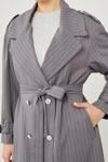 Antrasit Çizgili Desen Kuşak Kapamalı Trençkot