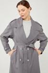 Levidor Antrasit Çizgili Desen Kuşak Kapamalı Trençkot