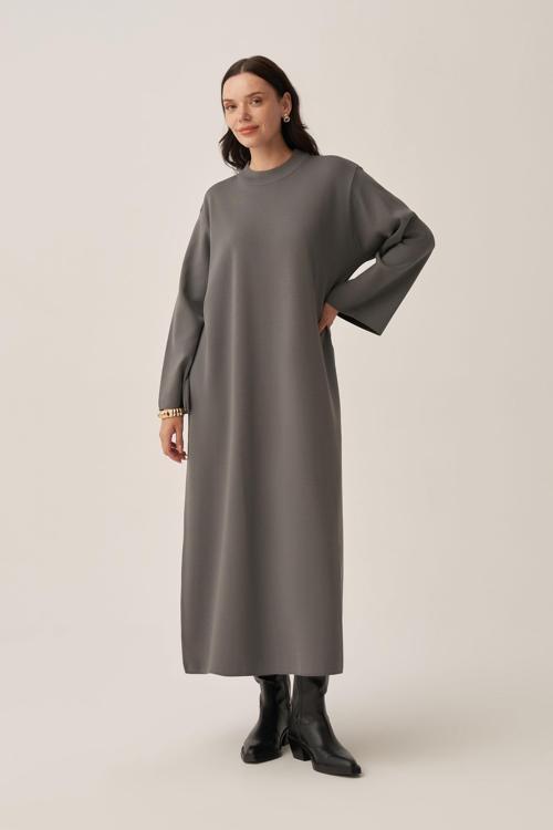 Şıklığı detaylarda arayanlara özel Antrasit-Geniş Manşetli Triko Elbise ile zarif bir görünüm yakalayın. Günlük ve özel kombinler için ideal tasarım ALLDAY’de!